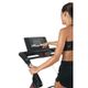• Další výbava. Dva praktické držáky pro láhev s nápojem, stojánek na tablet či smartphone a mechanismus vyrovnávání nerovností podlahy (vzadu).