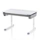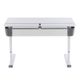 rostoucí psací stůl pro děti, nastavitelný sklon pracovní desky, výsuvná zásuvka, multifunkční pravítko, integrovaný box na kabely, transportní kolečka, deska bílá – šedá, vyroben v Německu