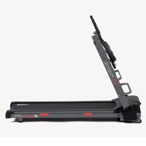 - Jednoduchá manipulace. Pomocí hydraulického tlumiče lze běžeckou plochu snadno sklopit. Následnou manipulaci s trenažérem usnadní transportní kolečka (umístěná vpředu).