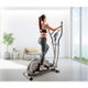 magnetický trenažér, elektronické ovládání zátěže, 16 stupňů zátěže, 18 programů, délka kroku 34 cm, 14 kg setrvačník, nosnost 120 kg