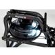 - Vybavení trenažéru. Anatomicky tvarované sedlo s unikátním systémem pojezdu, pojezd z hliníkového profilu osazen kuličkovými ložisky, opěrky nohou s nastavitelnou délkou a suchým zipem pro pevné uchycení chodidel, mechanismus vyrovnávání nerovností podlahy (vzadu).