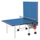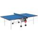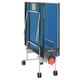 venkovní stůl, sklopitelný, modrá hrací plocha, 4 zdvojená kolečka, síťka součástí stolu, držák na pálky a míčky, možnost hry jednoho hráče, hmotnost 52 kg, modrá – stříbrná