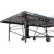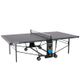 venkovní stůl, sklopitelný, hrací deska z melaminu, 4 otočná pogumovaná kolečka, síťka součástí stolu, vyrovnávací mechanismus, možnost hry jednoho hráče, držák na pálky a míčky, jednoduchý mechanismus sklopení, hmotnost 59,5 kg, vyroben v Německu