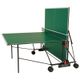 vnitřní stůl, sklopitelný, zelená hrací plocha, 4 zdvojená kolečka otočná o 360°, síťka součástí stolu, držák na pálky a míčky, možnost hry jednoho hráče, hmotnost 65 kg, zelená - černá